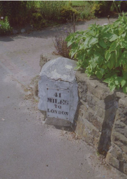 Milestone on the A2 (Canterbury Road), Sittingbourne, by no.201 "The Milestone" In Pavement with back set in low stone boundary wall. Showing 41 miles from London on one of it's faces.