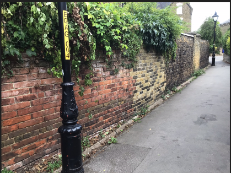 Brick Boundary Wall on the North side of Gatefield Lane, enclosing the Vicarage Garden, Faversham