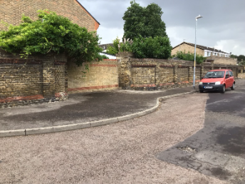 A late 19th Century, recessed-panel wall and gateway piers constructed of local yellow stock brick with band courses and other features in red brick. This substantial wall was constructed to enclose their Works Depot by the old Faversham Borough Council: the enclosure has since been filled with late 20th Century private housing. Some 12 bays of the old wall survive, together with the recessed quadrant gate reveals and a set of gate piers. But the original plinth of the rest of the enclosure also remains in-situ and is visible running South down Westgate Road and returning into Luton Road – so still indicating the full extent of the Works Depot.
